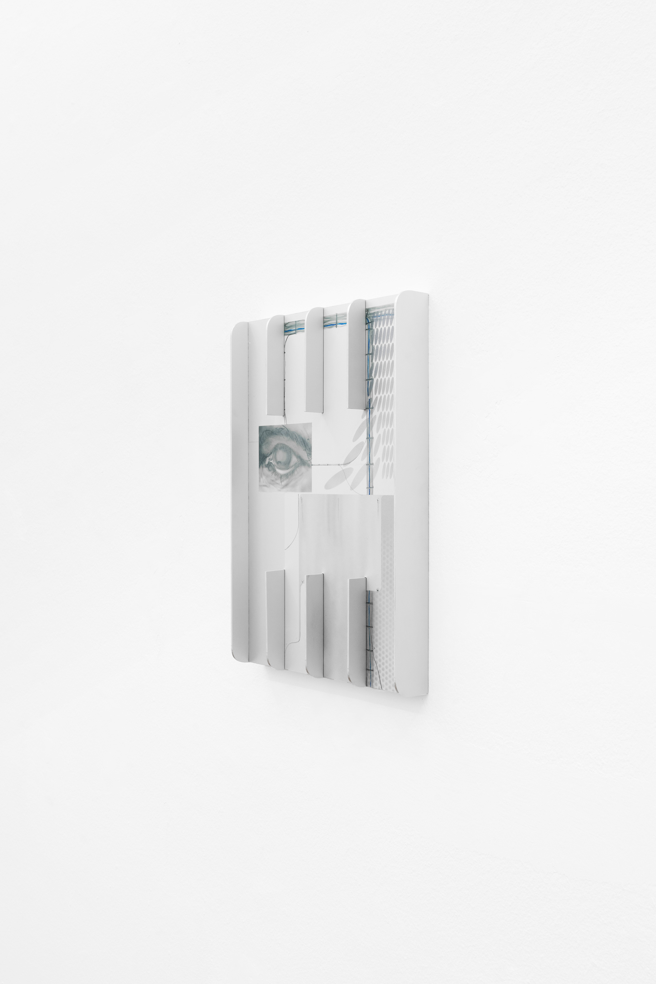 With HIDE & SICK, the artist takes a step forward of about a century, along the path of another epochal transition: that between the canons of classical/19th-century construction and the concepts of modernism. An equally complex change which, as theorized in Beatriz Colomina’s book X-Ray Architecture, was also stimulated by an obsession of medical derivation: the fight against tuberculosis and the development of X-rays; rationalist architects, inspired by these and by the typical asepticity of sanatoriums, composed a new architecture: functional, light, transparent (like an X-ray) and cold, as if to convey a concept of both physical and mental health; a synthesis easily traceable in the anti-decorative theories of Adolf Loos, in Le Corbusier’s 5 points of architecture, as well as in the hyper-glass buildings of Mies van der Rohe and Philip Johnson.